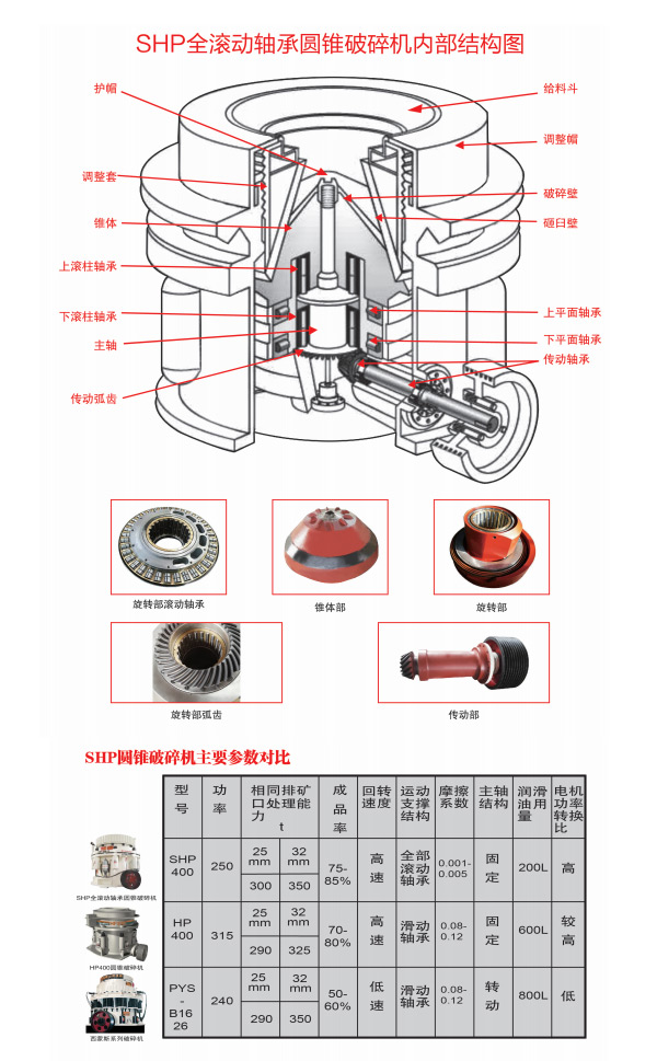 沈阳SHP滚动轴承圆锥破碎特点在于全滚动轴承设计所带来的较低的摩擦系数,将更多的点击功率转换为破碎力和滚动轴承所带来的破碎速度加快,并与合理的破碎腔型完美的融为一体,使沈阳SHP滚动轴承圆锥破碎机在中细碎的应用中,可实现更高的产能和更好的产品质量,在圆锥破碎机中独占鳌头。